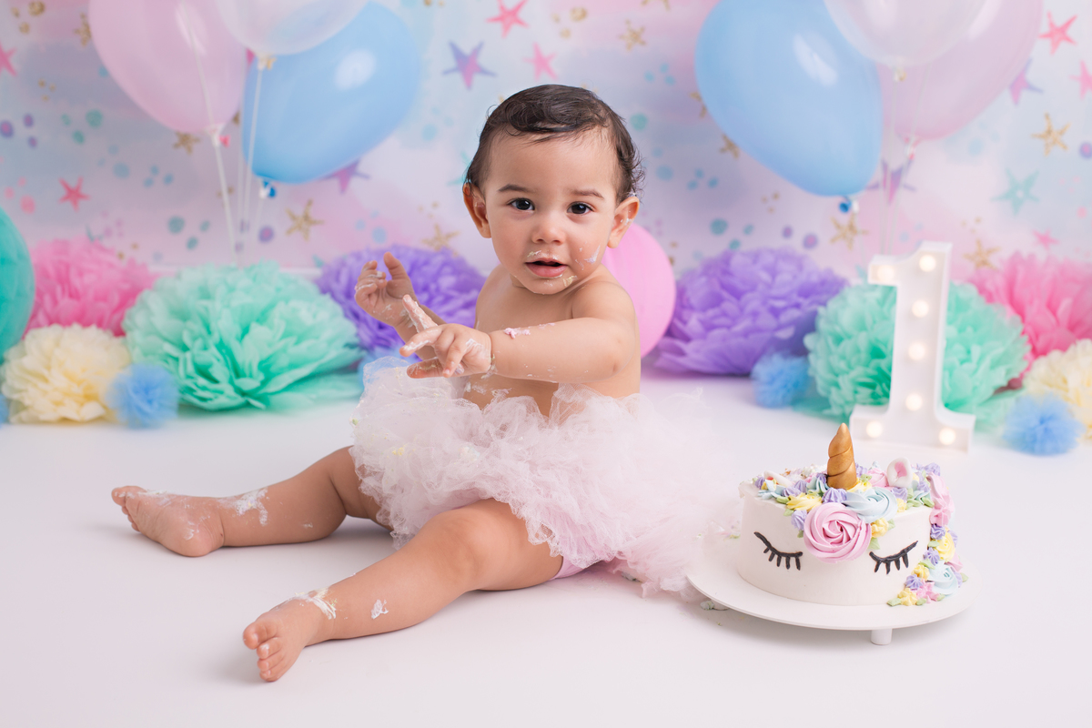 A Alice se divertiu muito no seu ensaio de 1 aninho, nada melhor que um lindo bolo e uma bagunça pra comemorar!
